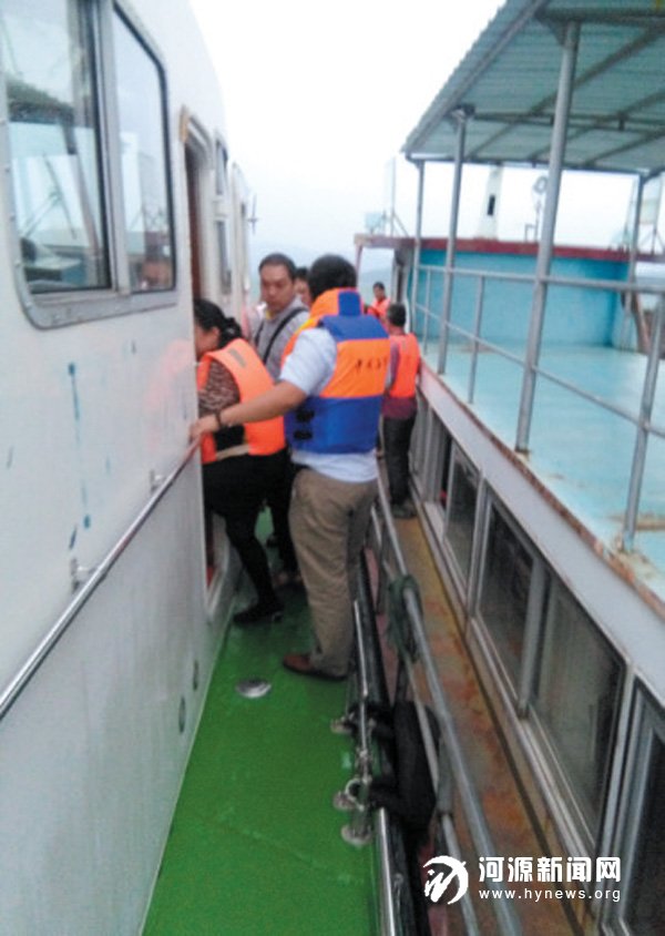 据河源海事局指挥中心副主任李鸿飞介绍,当天下午5 时08 分,该局指挥中心接到乘客报警求救电话称,一艘从锡场镇出发前往新港码头途中突发主机故障,失去了动力,当时湖面风急浪大,船舶在风浪中随时有倾覆的危险,船上有1 名船员和 19 名乘客共20 人被困,情况十分紧急。