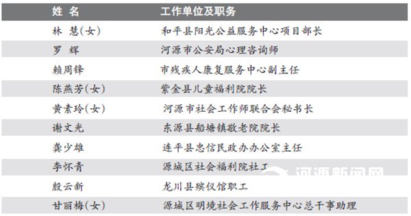 “河源最美社工”名单