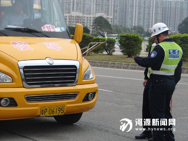 校车标志、三角锥、灭火器、驾驶证、行驶证,一样都不能少……昨日是春季开学的第一天,市交警支队江南、江北、江东交警大队组织警力,开展校车安全检查。在市区中山大道华怡集团红绿灯、越王大道与建设大道交会处,执勤交警认真检查经过的每一辆校车。