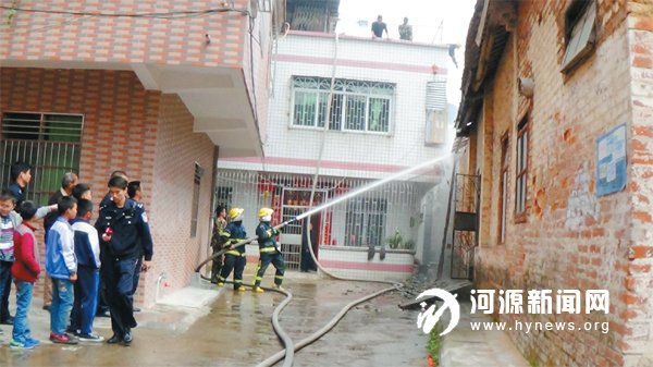 前日,市区河源大道岗古岭4 巷一座老房子(瓦房)突然发生火灾,导致该房屋卧室内的床铺被大火包围,房顶瓦片不断坠落,所幸屋内人员撤离迅速,源城消防中队接报后出动3 台消防车、12 名指战员赶往现场救援,分两队人员对着火点进行水枪压制,经过10 分钟将大火扑灭,现场未造成人员伤亡。消防人员提醒,破旧房屋容易引起火灾,应尽量避免狭小空间用火,确保安全。