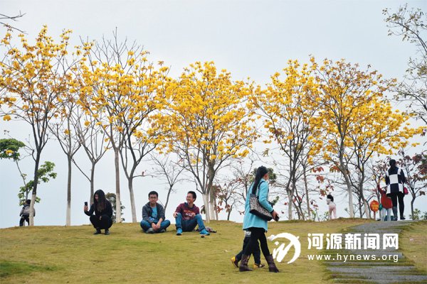 春季正值踏青赏花好时节。近日,难得市区天气放晴,客家文化公园里处处鲜花盛放,竞相争艳,吸引不少市民前往观赏游玩。公园里那一树树尽情绽放的黄花风铃,光彩夺目,极具观赏性;龙头山上的勒杜鹃在阳光照耀下更显艳丽;还有紫荆花、桃花、山茶花等等,随着公园起伏的地势交错辉映,使人置身于花园美景之中。