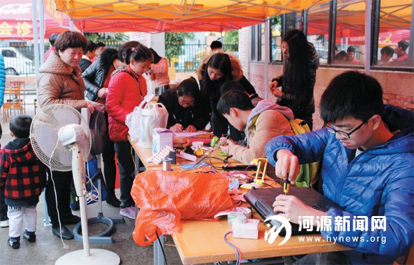 为进一步弘扬雷锋精神,昨日,由河职院团委主办的“雷锋月·志愿服务‘一条街’” 活动在源城区源南镇胜利村附近开展。活动现场,该校数十名学生志愿者为广晟学府花园、汇博苑以及胜利村居民提供义务维修、心理咨询、义务会诊、无偿献血知识宣讲等服务。