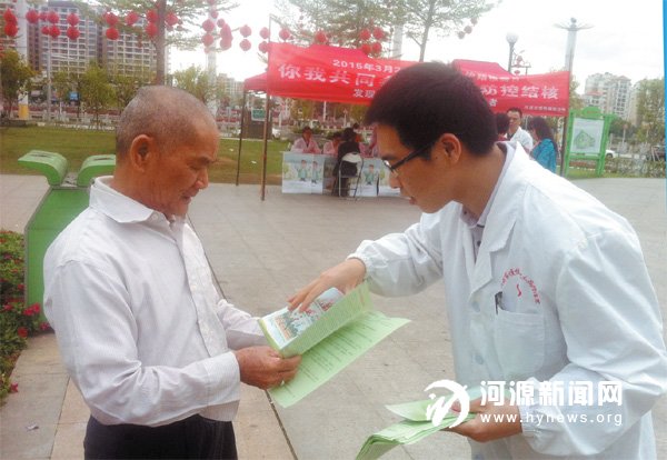 3 月24 日是第20 个“世界防治结核病日”,主题为“你我共同参与,依法防控结核——发现、治疗并治愈每一位患者”。昨日,市慢性病防治院在茶山公园开展“世界防治结核病日”宣传活动,为市民发放防治知识宣传单。据了解,去年我市共发现并登记治疗活动性肺结核病人2399 例,其中男女比例为3:1,年龄为中老年人占多数,职业分布以普通农民工、家务及待业人员、学生人群为主。