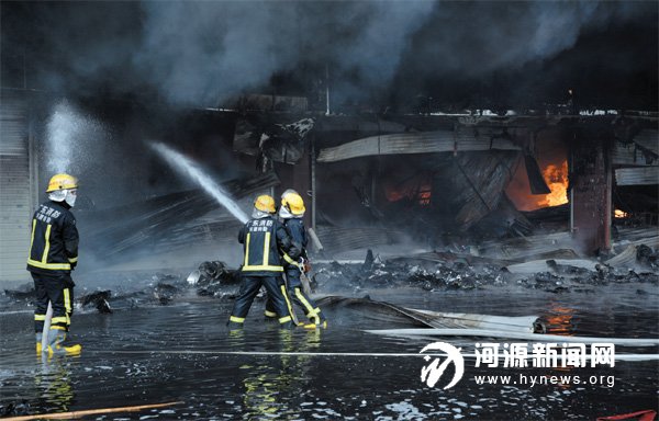 昨日早上6 时左右,市区西堤路丽江城A01 栋一楼商铺发生火灾,过火面积约1000 平方米,火灾中两名群众死亡。记者第一时间赶到现场看到,由于一楼商铺存有大量易燃物品,火势蔓延迅速,形成火烧连营之势,现场浓烟滚滚。商铺二楼以上均为居住楼,共有34 户居民,由于火灾发生时间为清晨,居民多数仍在熟睡中,情况十分危急。在省消防总队及惠州、东源、和平等消防部门的支持和市区消防官兵的不懈努力下,共解救出50 余名受困群众,至9 时30 分许,火灾基本得到控制。记者发稿时,火灾原因、人员伤亡及财产损失情况正在进一步调查中。