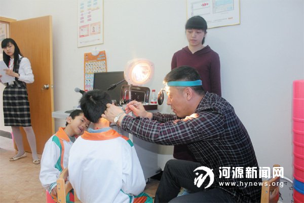 工作人员为市博爱学校的学生检测听力。昨日上午,省侨界仁爱基金会魏基成 “天籁列车”驶入我市,为我市听障患者捐出549 个终身保修的助听器,总价值约百万元。此次捐赠活动由省侨联组织,市侨联牵线搭桥。该项目是中国侨联海外顾问、知名旅澳华人、慈善家、澳洲ABC 纸业集团董事长魏基成先生创立的慈善活动品牌,旨在帮助无力购买助听器的听力障碍者免费取得助听器。当天,魏基成 “天籁列车”工作人员还免费为博爱学校学生检测听力。