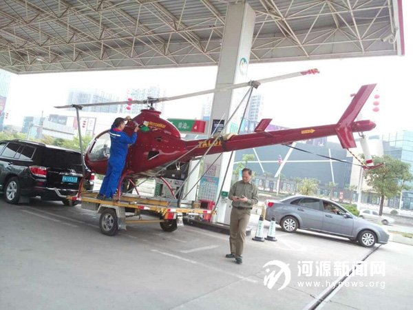 记者从中石化河源石油分公司了解到,“飞机加油”确有此事,不过,那是3 月30 日的事,事发市区黄沙中石化加油站。据当时在现场的该加油站站长介绍,来加油的飞机是一辆低空直升飞机,长约3 米,能坐2 个人,由一辆汽车加挂拖卡拖着来到油站。飞机是市区一家专营飞机、房车等租赁服务的科技公司所有,一般租给人旅游观光用。飞机要加高标号汽油,加油量不高,大概80 升。据了解,这是河源中石化加油站第一次有飞机来加油,当时引起现场群众的围观。