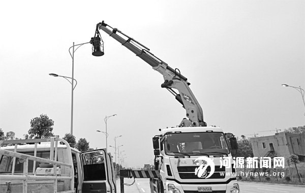 前日上午,有市民向记者报料,称在市区东江西路马路两边的路灯大白天亮灯,造成严重浪费。记者接报后赶到现场看到,马路两边的路灯确实在白天亮着,而在不远处有两辆车正在吊起工人作业。据现场人员介绍,白天亮灯是为了更好地进行检修,对一些烧坏不能正常工作的灯泡进行更换,检修很快将可完成。