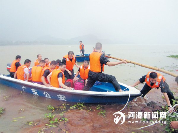 我市目前已进入汛期,是洪涝灾害多发的季节。为提升抢险救灾的战斗力,5 月18 日,市公安局特警支队开展综合演练。演练中,市公安局110 指挥中心通报,在我市某流域发生洪涝灾害,有数十名群众被洪水围困。接警后,特警支队立即启动抢险救灾紧急预案,并迅速出动警力。在“受灾”现场,特警队员紧张有序地展开救援工作,成功解救并转移“被困群众”。