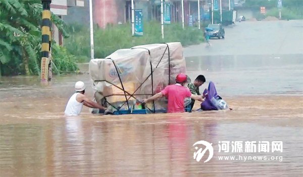 昨日下午,205 国道东源县仙塘派出所附近一处道路因地势低洼积水严重,一台三轮摩托车在行驶过程中被困水中。东源消防中队官兵到达现场后,发现载满货物的三轮摩托车被困在水中,积水已超过1米,几乎把整辆三轮摩托车淹没,水里积满了黄泥土,无人员被困。大约20分钟后,消防官兵终于将被困三轮摩托车安全救出。