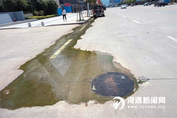 记者接报后来到现场发现该污水井盖冒出的污水沿着路边一直流淌,污水流经的地方都长起了绿色的藻类植物,放眼望去,这条“绿带”的长度约有100 多米。“绿带”途经一个公交车站,经常在这里等车的李女士告诉记者,“最近在这里等车都能闻到一股腥臭味,很恶心。”