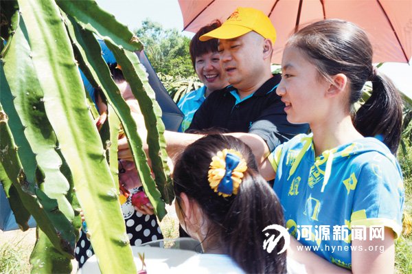 前日,本报组织的火龙果采摘活动顺利进行,小记者和家长共30 多人一同走进连平大湖镇大福林火龙果场,品尝新鲜的果实,亲自进入园区采摘火龙果。图为经常参加本报活动的市民曾先生一家在果场“发现”了两个硕大的火龙果,正兴高采烈地采摘。