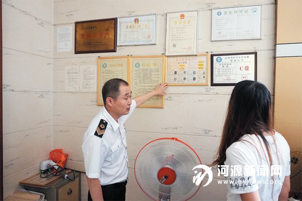 将工作人员健康证明、公共场所卫生管理制度、禁烟标识和《卫生许可证》挂在消费者能清晰辨别的醒目处是全国卫生城市复检暗访的必检项目之一。为保证我市能顺利通过此次的复审暗访,市卫生监督所近日对市区内所有旅馆、酒店、餐厅等经营性场所进行相关标识上墙的检查工作。记者跟随走访发现,很多商家以影响前台美观为由,只悬挂了部分标识,并未按照要求将所有证明和标识全部挂起。针对未按要求悬挂相关标识的经营者,执法人员马上责令其进行整改。