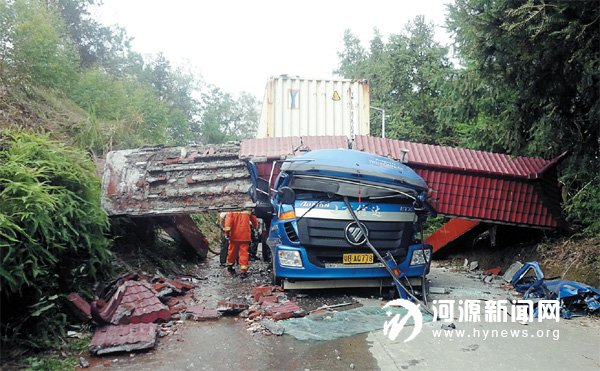 9 月6 日上午7 时51 分,连平县田源镇长翠村村道一大货车在行驶过程中不慎撞倒牌楼,刚好被砸中车头,车上一人被困。连平消防中队接警后迅速出动两辆消防车、 14 名指战员赶赴现场,发现驾驶室内有一名被困人员,十几吨的石柱紧紧压在车头上方,导致车头严重变形,给救援增加了很大的困难。