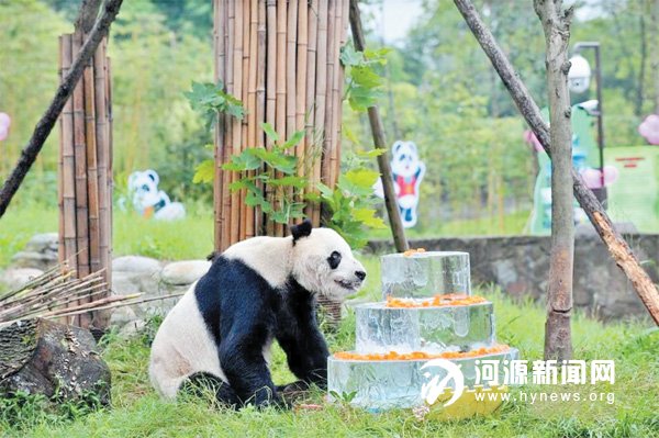 21日,在中国保护大熊猫研究中心都江堰基地,明星熊猫盼盼迎30岁生日,相当于人类100岁,是现存年纪最大的雄性大熊猫。饲养员为他准备了水果生日大餐。粉丝送祝福:盼盼爷爷,继续萌到天荒地老。据了解,盼盼的后代众多,现存血缘后代 100余只。