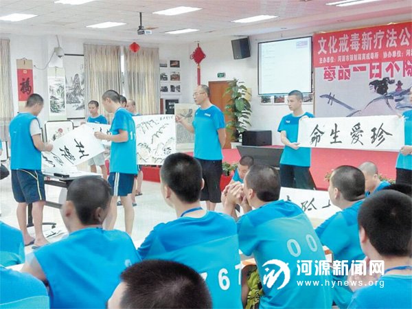 每逢佳节倍思亲,吸毒无情断我情。在中秋节到来之际,为圆学员与家人团圆之梦,市强制隔离戒毒所举行“文化戒毒新疗法暨中秋亲情接见活动”,通过文化和亲情感化学员。图为学员们在展示文化教育成果。