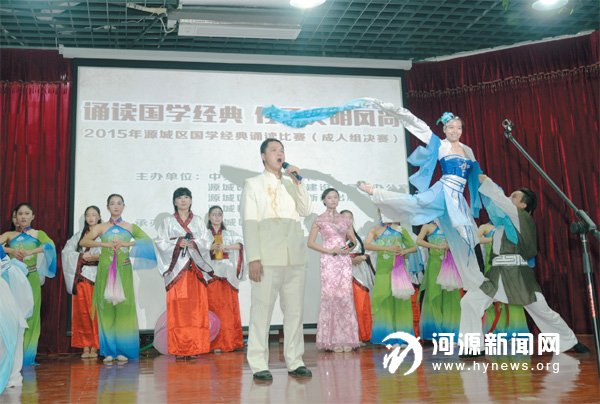 昨天下午,由源城区委宣传部、文明办、文广新局、教育局联合主办,区图书馆承办的“朗诵国学经典传承文明风尚”2015 年源城区国学经典朗诵比赛(成人组决赛)在区图书馆举行。最终,来自上城街道的《春江花月夜》以94 分夺得比赛金奖。