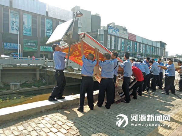 为营造整洁优美的市容环境,全力迎接国卫暗访复检工作,昨日上午,市城监大队重点对城乡结合部存在的乱拉挂、违规广告牌、建筑材料乱堆放以及超门槛经营等现象进行了综合整治。据市城监大队相关负责人介绍,今年以来,市城监大队为我市“巩卫”、“创文”工作的推进,对我市的市容市貌、市场周边环境等进行了高标准、严要求的管理,希望广大市民能够支持、配合市城监大队的工作,共同为营造优美的市容环境努力。