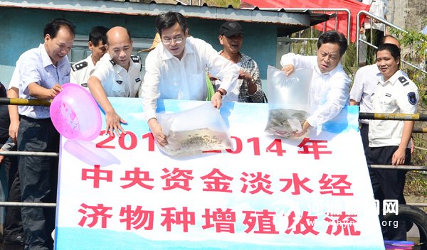 昨日,市委、市政府在万绿湖畔开展2015 年河源市渔业增殖放流活动,750 多万尾鱼苗放流万绿湖。市领导何忠友、黄建中、黎意勇、章权等和工作人员一起,将一尾尾鱼苗放入万绿湖。据悉,本次增殖放流活动,我市根据万绿湖水生生物资源状况并结合渔业专家建议,先后放流了青鱼、草鱼、鳙鱼、鲢鱼等8 个品种鱼苗共753.5 万尾,总价值达59.4 万元。活动还举行了保护万绿湖、打击电毒炸鱼宣誓仪式。