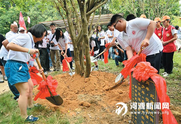 前昨两日,香港国民教育促进会到我市开展“饮水思源东江之水越山来”历史追溯团活动,380 多名香港各界青年学生通过参观新丰江大坝、到万绿湖植树立碑(如图)等形式,饮水思源,纪念东江对香港供水50 周年。前晚,市委副书记黄建中为参加活动的两地青少年讲述了河源发展的历史和河源为粤港发展所做的贡献和努力,寄语青少年要热爱家乡、热爱祖国,以积极的行动回报社会。
