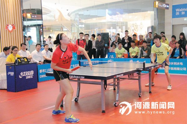 日前,河源市“乒协杯”乒乓球团体联赛在坚基购物中心拉开了2015 赛季比赛大幕。在接下来的半年时间里,参加联赛的30 多支队伍、100 多名乒球爱好者将联袂向市民奉献200 余场精彩的国球对决。据了解,该联赛是我市有史以来时间跨度最长、水平最高的乒乓球联赛,将有效提升我市乒乓球水平、推广全民健身理念。联赛开幕当日,市长彭建文与广大市民一同观看了首场比赛。