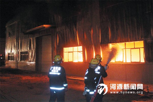 前日18 时50 分,东源消防中队接到报警,东源县仙塘镇蝴蝶岭工业区中信科技厂房仓库着火。到达现场后,消防官兵获悉火灾处于猛烈发展燃烧阶段,燃烧面积约2000 平方米,燃烧物质铁粉属于易燃易爆,并且还在不断发生爆炸,大约有100 吨的铁粉,厂房后侧还约有两吨切割油,如果火势蔓延随时有可能发生爆炸,后果不堪设想。(如图) 10 分钟后,文昌消防中队、源城中队、特勤中队到达现场增援,消防官兵经过5 小时的努力,才将火扑灭。据了解,事故未造成人员伤亡,起火原因还在调查中。