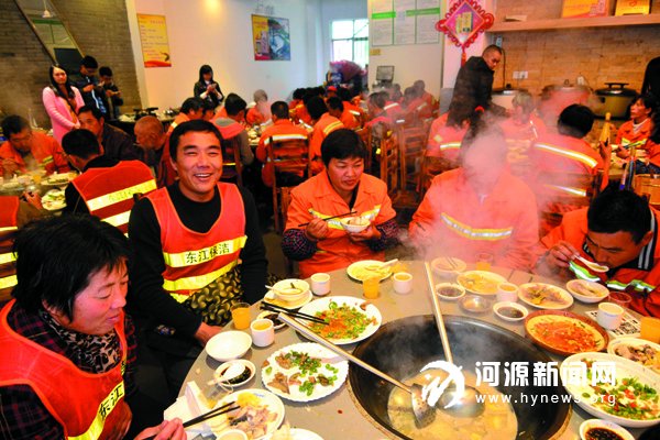 为感谢城市美容师们,昨天中午,市区一家爱心餐厅宴请市区100 名环卫工人到店里吃火锅。当天,该餐厅专门摆出10 桌宴席,感谢这些城市美容师们为美化城市做出的贡献。该餐厅老板刘燕女士说,每次看到环卫工人不管严寒酷暑,都在认真清扫街道,觉得环卫工人太不容易了,于是就有了想请环卫工人吃顿热乎饭的想法。另外,其他爱心商家也为环卫工人送上润手霜、唇膏、茶叶等爱心大礼包。