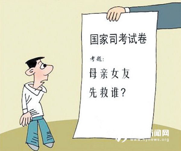 据《广州日报》9 月22 日消息,“母亲与女友同时落水,你先救谁?”昨日,2015 年国家司法考试真题公布,试卷二中就出现了这道令广大男生困惑许久的难题,不过在考题中,母亲和女友不是落水了,而是身处大火之中。“今年的司考真是一部非常非常精彩丰富的长电影!”不少考生在网上发表感叹,称考题奇葩雷人。
