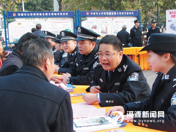 10 日上午,市区公安机关在老城街心花园开展以“110,与您携手共创平安”为主题的系列宣传活动。