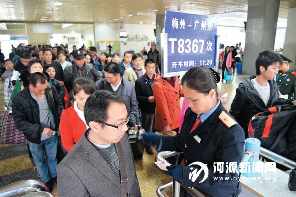 河源火车站工作人员告诉记者,虽然昨日为春运首日,但在一周前归家的旅客数量已经上升,河源火车站春运首日发送旅客数量4000 多人次,龙川站仅有2500 人次左右,客流主要以农民工为主,预计2 月10 日-17 日河源火车站将迎来春运高峰,龙川站高峰出现则在本月22日、23日。