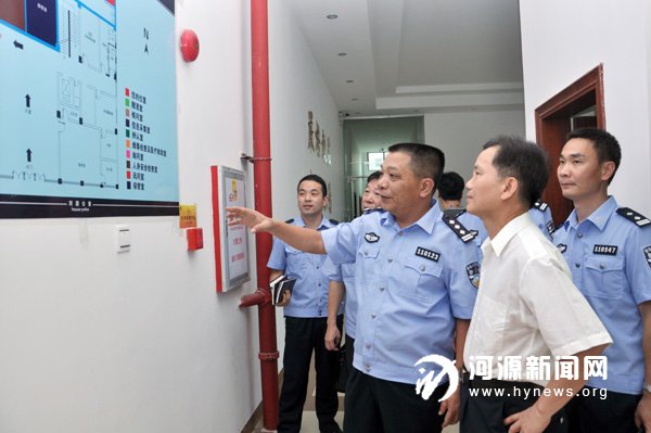 源城区副区长、公安分局局长赖昌彬在检查办案中心的建设情况。