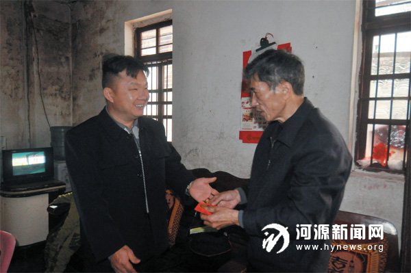 昨日,罗镜标的同学将善款交给其父亲罗佛安。