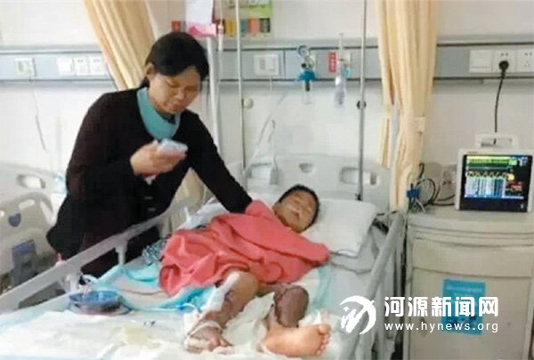 原本夫妇俩就落下残疾,幸好上天给这对夫妇送来了一个聪明伶俐的小儿子,没想上天又给这个不幸的家庭开了一个玩笑。4 月26 日,年仅7 岁的儿子叶富浩在东源县曾田镇家门口玩耍时却被一辆小货车卷入车轮下,双腿被车轮辗压,血肉模糊,如今,叶富浩还躺在深圳第二人民医院重症病房接受治疗。这一厄运也让这个家庭陷入了经济危机,所幸的是在爱心人士募捐下,一笔笔善款汇聚成一份份爱心,在给叶富浩输送 “救命血液”,截至记者发稿时,已经筹集到善款40多万元。