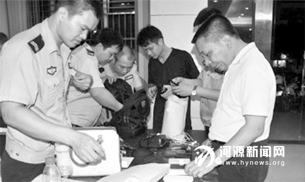 源城公安分局局长赖昌彬亲自清点嫌疑人作案工具。