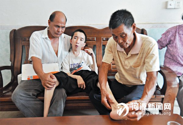由于没有得到及时治疗,刘辉财的身体越来越差,双脚肌肉严重萎缩,11 岁开始,他再也没有踏出家门一步;同胞的刘辉国则头脑呆滞。照顾一家人的重任落在了年迈父母身上。在刘志威家里,记者见到刘辉财,目光呆滞、瘦骨嶙峋的他已无法开口讲话,口水直流。76 岁的刘集昌说,孙子今年21 岁,每天都会抽搐,他跟老伴两个人总要帮他按摩全身。