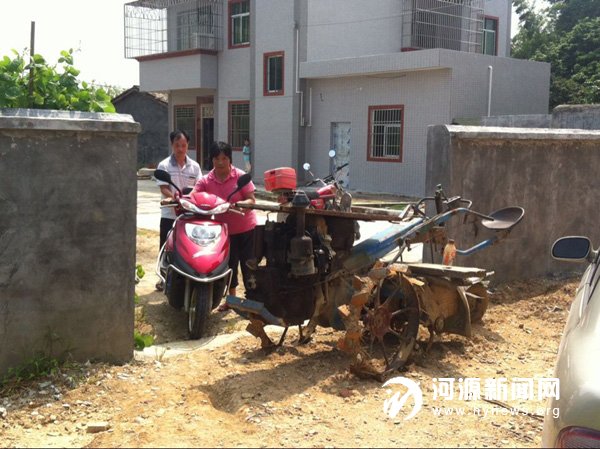 远亲不如近邻,每天都是低头不见抬头见,为何邻里之间要闹得这么不愉快呢?昨日,记者在市民欧先生的带领下,来到了古竹镇孔埔村村民邹爱宏家里,记者看到,邹爱宏家四周都用围墙围起来了,留有一个近 3 米宽的大门,然而这道唯一进出他家门的大门却被一辆拖拉机堵住了。邹爱宏告诉记者,这辆拖拉机从7 月24 日就已经堵在他家大门口了,每次只能容身一个人进出,摩托车要小心翼翼才能推进去。孩子进出家门只能爬越拖拉机而过,这十多天来,孩子已经多次摔倒,险象环生。对于邻居堵门一事,他也多次求助于当地相关部门,可问题未得到解决。
