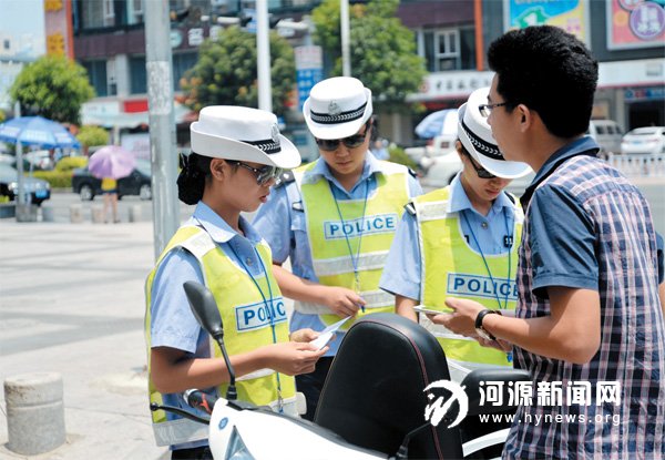 夏季烈日炎炎,室外温度早已飙升至三十七八摄氏度,地表温度甚至达到了四五十摄氏度,烈日下柏油马路都几乎要烤化了。在这种人人唯恐避之不及的暴晒下,市区华怡路口执勤的女子中队的队员们依旧穿戴整齐,烈日下专注地指挥着来往车辆、疏导交通。