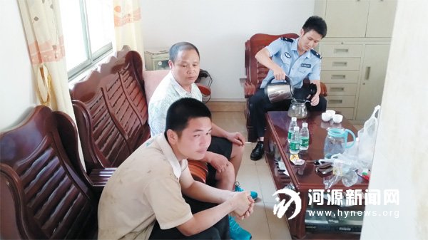 当刘轩成父亲拿出孩子的相片时,蓝口镇派出所的一名谢姓民警马上确认,12 日下午见到的孩子是刘轩成,并马上和地运村的村干部联系,同时热心地带着志愿者去孩子出现过的村子。在村干部和当地村民的带领下,经过兵分几路的找寻,最终在当天下午1 点50 分找到了走失男孩刘轩成。