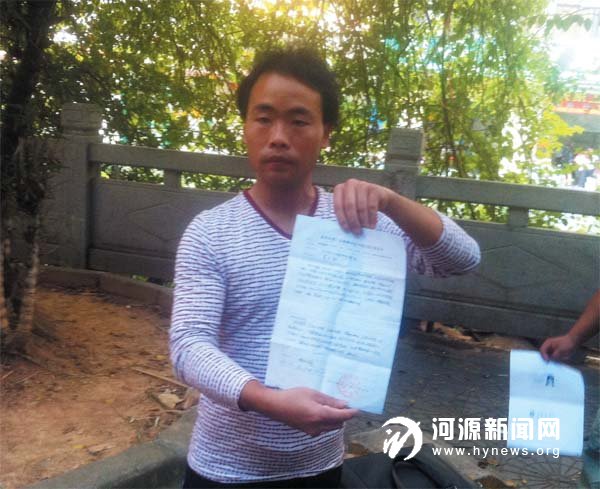 曾木林拿着医院出具的精神分裂症鉴定书给记者看。