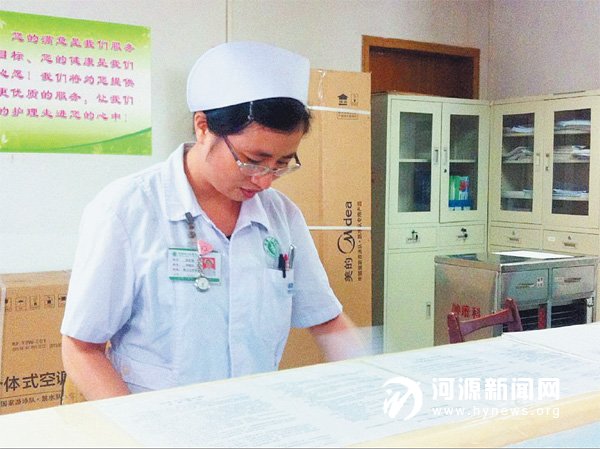 “最美护士”黄丽霞正在检查患者病历。