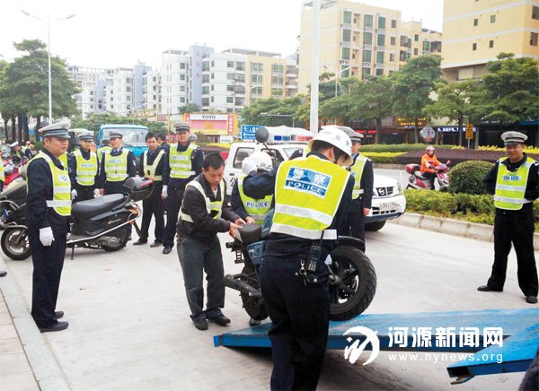 12 月5 日起,市公安局交警部门出动大批警力,对比华利门口、宝源路、海关路口、新城车站路口等多个路段的车辆乱停乱放等交通违法行为进行集中整治,查处了一大批违停车辆,确保以良好的交通出行环境迎接创文检查。7 日上午,交警部门对市区中山大道、万隆城广场、儿童公园、客家文化公园等路段的乱停放车辆进行整治。据悉,此次交警部门着重整治的主要交通违法行为包括:车辆乱停乱放、驾驶摩托车不戴头盔、三轮车进入市区行驶、行人横穿马路不走斑马线、机动车乱鸣喇叭等。其中,市区车辆乱停乱放现象较为突出,更是行动整治的重点。在万隆城广场,记者看到,有几十辆摩托车不按规定,随意停放在人行道上,交警部门采取了强制措施进行清理。市交警支队江北大队副大队长刘小海指出,对于违停车辆,如果执勤警告后拒不开走的,交警部门将采取强制措施,将车辆拖走,依照《交通法》相关规定开具执法凭证对当事人进行处罚。