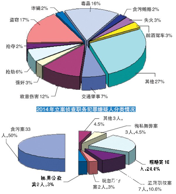 2014 年,全市检察机关充分发挥检察职能,在服务经济社会发展的同时,着力反腐倡廉建设,大力查办职务犯罪,全年立案侦查贪污贿赂犯罪案件36 件51 人,人数同比上升8.5%。