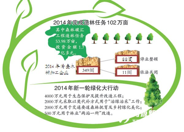 在加大造林绿化资金投入力度的同时,我市还把保护生态和造林绿化工作放在重中之重的位置上来抓,将“一灭三改”森林碳汇工程列入市“十件实事”和“三赛”重点亮灯考核项目,立项督办,强力推进,去年全市完成造林任务102万亩,实现森林面积、森林蓄积“双增”目标。在做好新造林、中幼林及时抚育的同时,我市继续在全市范围内实施封山育林,加强林木采伐监督管理,开展木材加工经营企业全面清理整顿专项行动。