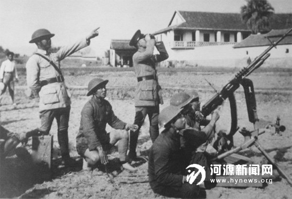 1938 年,河源福音堂附近,中国军队正在进行抗日演习。(翻拍老照片)