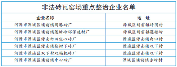 在重点行业脱硫、脱销、除尘设施建设上,今年我市除了关注深能合和电力(河源)有限公司、河源旗滨硅业有限公司做好脱硫、脱销,安装高效除尘设施外,对其他行业也加大了关注力度。今年我市将重点整治建材行业,要求广东恒福陶瓷等共5 家陶瓷厂改用清洁能源或安装烟气脱硫及高效除尘设施,河源和兴水泥有限公司和河源市金杰环保建材有限公司完成脱硫除尘改造,河源市金杰旋窑水泥有限公司要安装在线监测系统并与环保部门联网。此外,今年我市还将对市区范围内的6 家非法砖瓦窑场实施清拆整治工作。