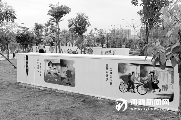 东源县滨江公园的谚语长廊与社会主义核心价值观生动地融合在一起。