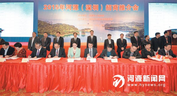 昨日,我市在深圳五洲宾馆举行2015年河源(深圳)招商推介会。招商推介会达成签约项目45个,合同投资总额累计达463.35亿元,涵盖了新电子、新能源、新材料、现代农业、现代物流、旅游、环保及基础设施等领域。