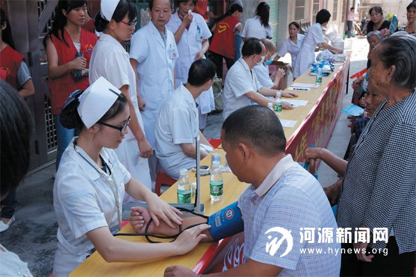 志愿者开展义诊活动。源城“幸福社区创建”项目的实施让居民在家门口感受幸福生活。