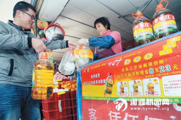 老东江董事长丘国华介绍,活动开展以来,在广晟超市每天都有大批消费者排队拿着空油瓶等待兑换,公司不得不用大车运送油品和回收的空旧油瓶,此项活动深入民心,得到社会和政府的认可。