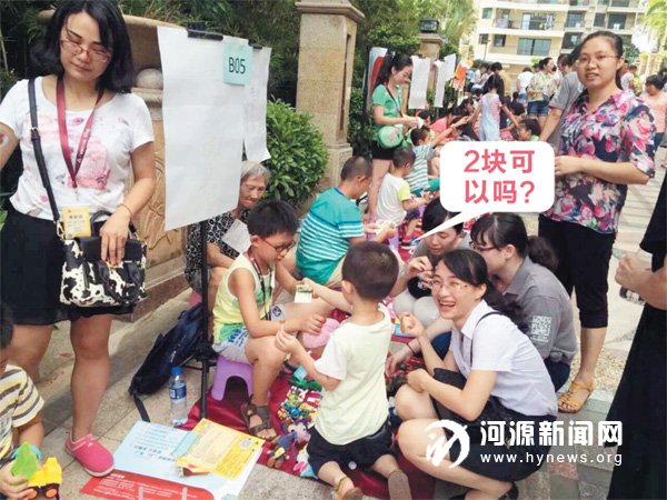8 月22 日下午,广发银行河源分行在市区长鸿花园小区开展首期幼儿财商体验活动——“幼儿财商跳蚤市场”,让孩子通过跳蚤市场平台体验自己开店的乐趣,初步感受经营理念,体验“小老板”的创业艰辛与乐趣。除此之外,活动还从以下几方面对幼儿进行财商教育,即生活用品再利用;体验真实的商品交换,货币流通的过程;体验市集这种社会的活动;将数学灵活应用到生活中;通过个性化的推销和介绍,实践不同的交换方式等。