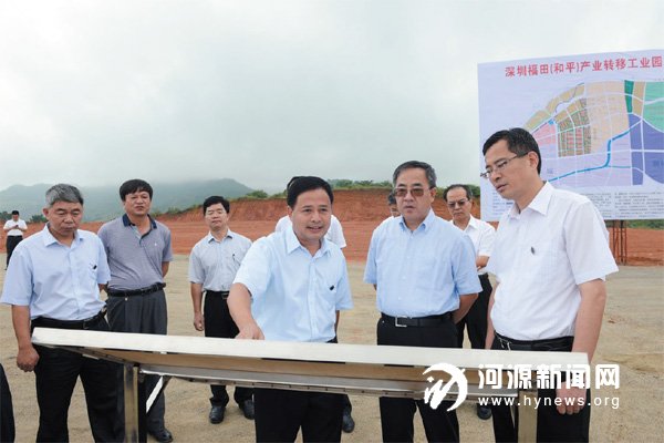 中共中央政治局委员、广东省委书记胡春华在市委书记何忠友、和平县委书记何伟光陪同下到和平工业园调研。